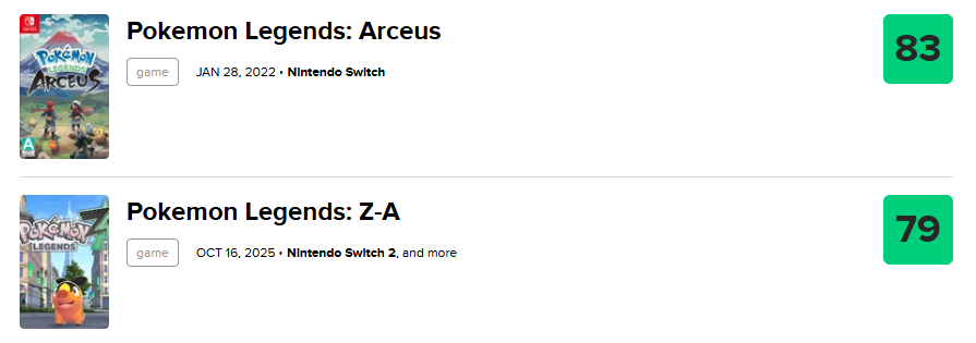 「ポケモンレジェンズ」シリーズの2作目として、多くのプレイヤーが前作「レジェンズ アルセウス」と比較しています。海外の大手ゲームレビューサイト「Metacritic」のメタスコアを見ると、「アルセウス」が83点だったのに対し、「Z-A」は79点(10月18日現在)と、やや下回る評価になっています。
