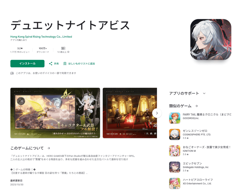 注目すべきは、インストール数です。デュエットナイトアビスの「141万」という数字は、他の2作品(ステラソラ 124万、カオスゼロナイトメア 21万)と比較しても最も多く、CBTや大々的なPR活動、そして「ガチャ廃止」というキャッチコピーが、多くのユーザーの興味を引くことに成功したことを示しています。