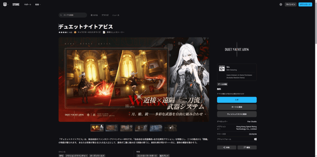 スマホ版(Google Play)の評価が前述の通り「3.2/5.0」に対し、PC版が配信されているEpic Games Storeでの評価は「4.3/5.0」(同日時点)と、高評価を得ています。