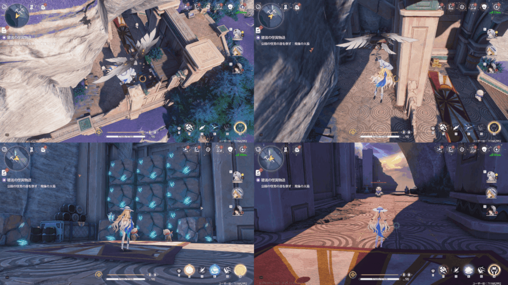 最後に、マップ上部のワープポイント(画像内の④付近)へ移動します。ここは少し特殊な移動方法を使います。