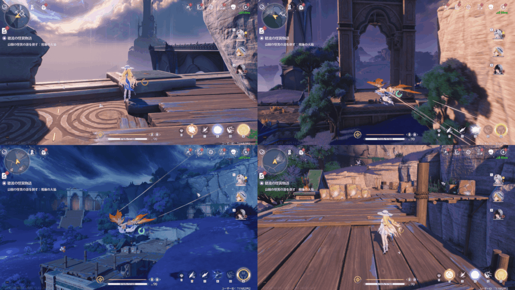 ルート①での回収が終わったら、そのままの足でルート②のポイントへ向かいます。①の場所から②の方向へ向かって、鉤縄や滑空(ソアー)を駆使して移動してください。
