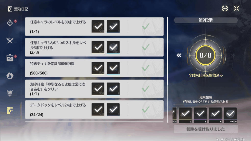 この漂白日記の報酬が非常に豪華です。各レベルを達成するごとに40,000枚程度のシェルコインがもらえるほか、ユニオンレベルを上げるための経験値(ユニオンEXP)も大量に獲得できます。次に何をすればいいか迷った時は、まずこの漂白日記のクリアを目指して行動するのが、初心者にとっての最適解です。