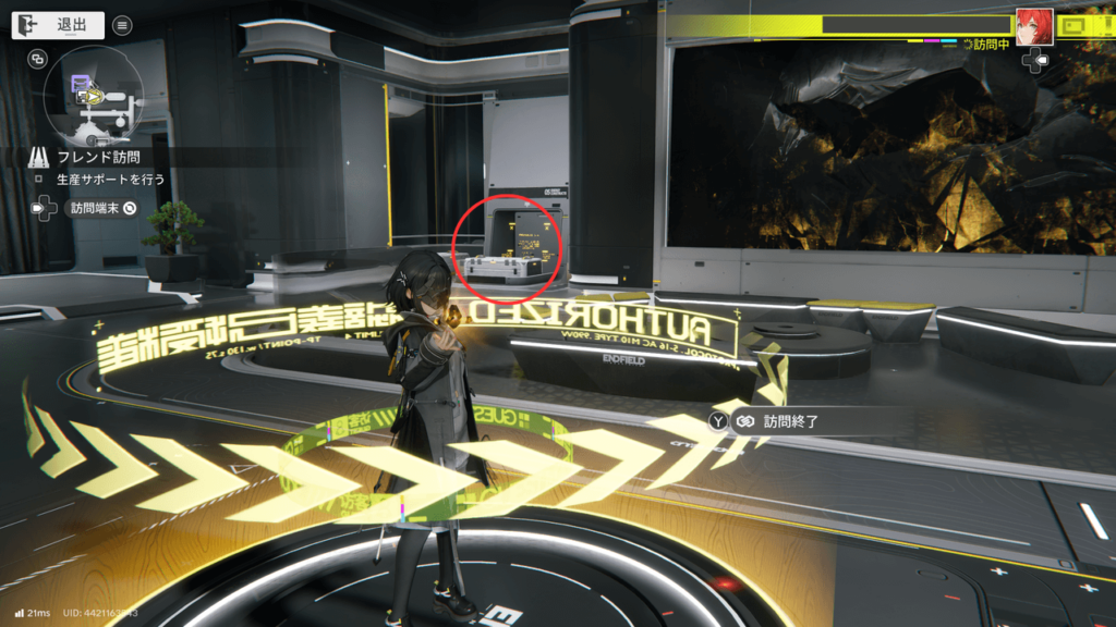 フレンドの拠点にワープ後、左後方の商品取引端末にアクセスします。