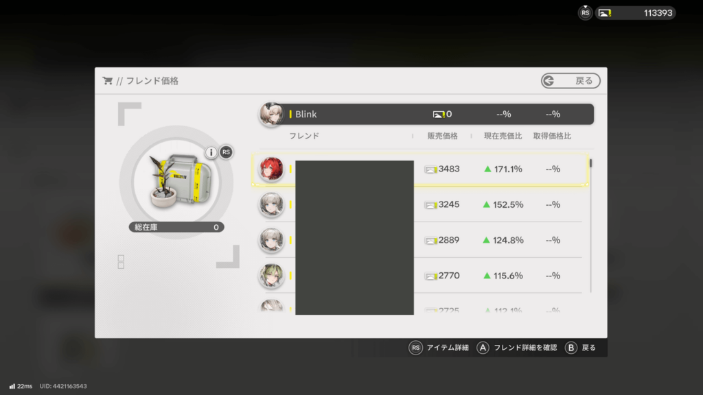 • 購入前に「フレンドの価格を確認」し、自分の購入価格より高い売却先を見つける