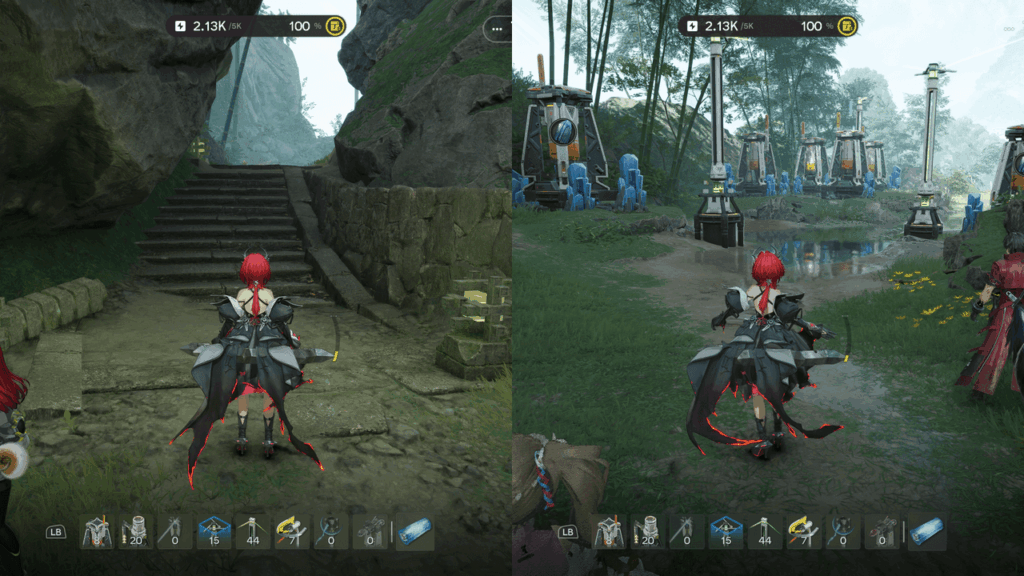 メインストーリーの進行に合わせて探索範囲を広げることで到達可能です。北側スポットから途中、いかだで川をわたりますが、渡る前と後で中継タワーを立てることで、電力を伸ばすことが可能です。