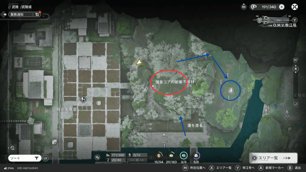 青鉄鉱物を効率よく入手できる場所は、拠点の北側に位置する「不帰林」と呼ばれるエリアです。