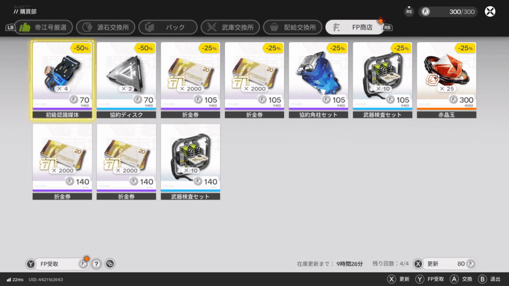集めたFPは、「購買部」にあるFP商店で使用することができます。