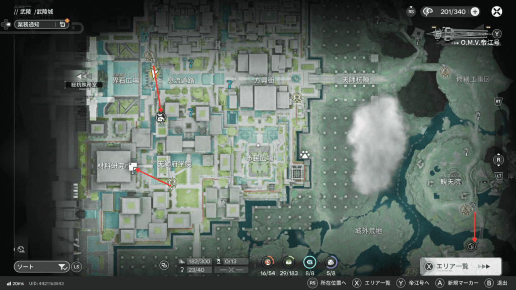 この動線をジップラインで高速化することで、任務にかかる時間を数分の一に短縮できます。特に武陵は広大なので、適切なルート構築が取引券稼ぎの効率に直結します。