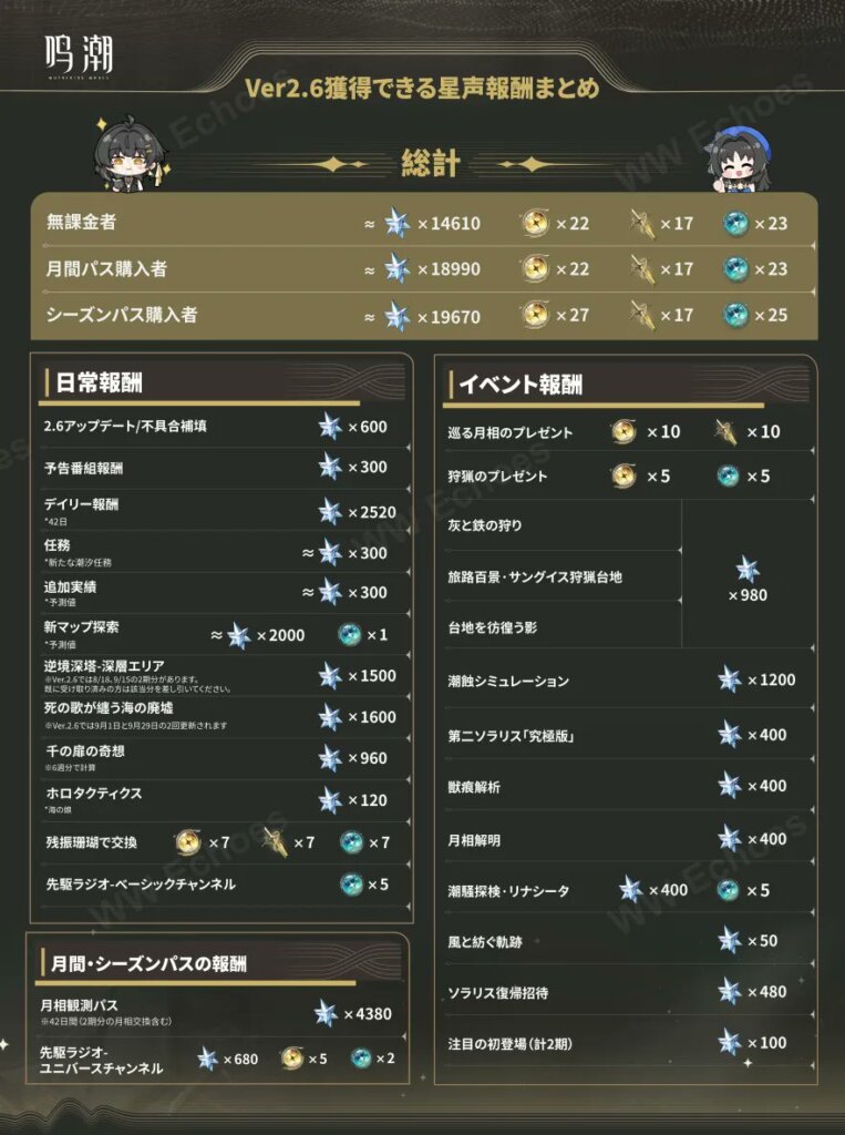 毎日ログインや探索、イベントの消化が前提ですが、無課金でも14610星声獲得することができ、